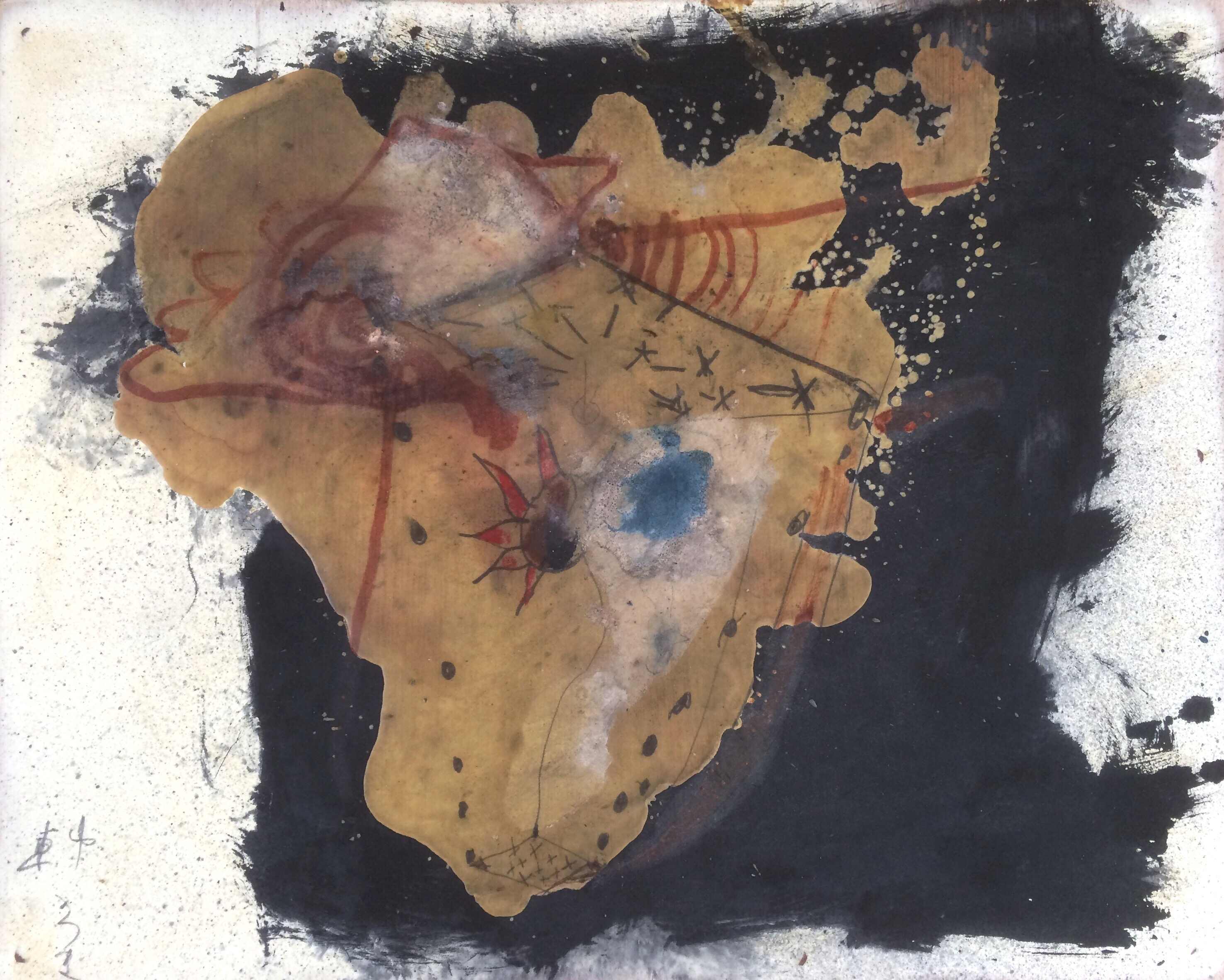 ■素材: 木製パネル・油絵の具・鉛筆・石膏系壁材・蝋